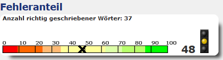 Abgerundet werden die beiden Kennziffern und die Förderempfehlung durch symbolische Ampeln, die eine sofortige Einordnung sowohl der Rechtschreibkompetenz als auch des Förderbedarfs erlauben.